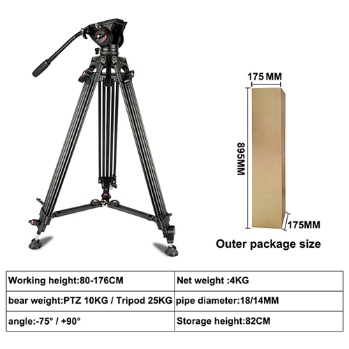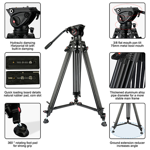 ອາລູມິນຽມ tripod, mount ປືນທົນທານ, ຄວາມສູງທີ່ສາມາດປັບໄດ້