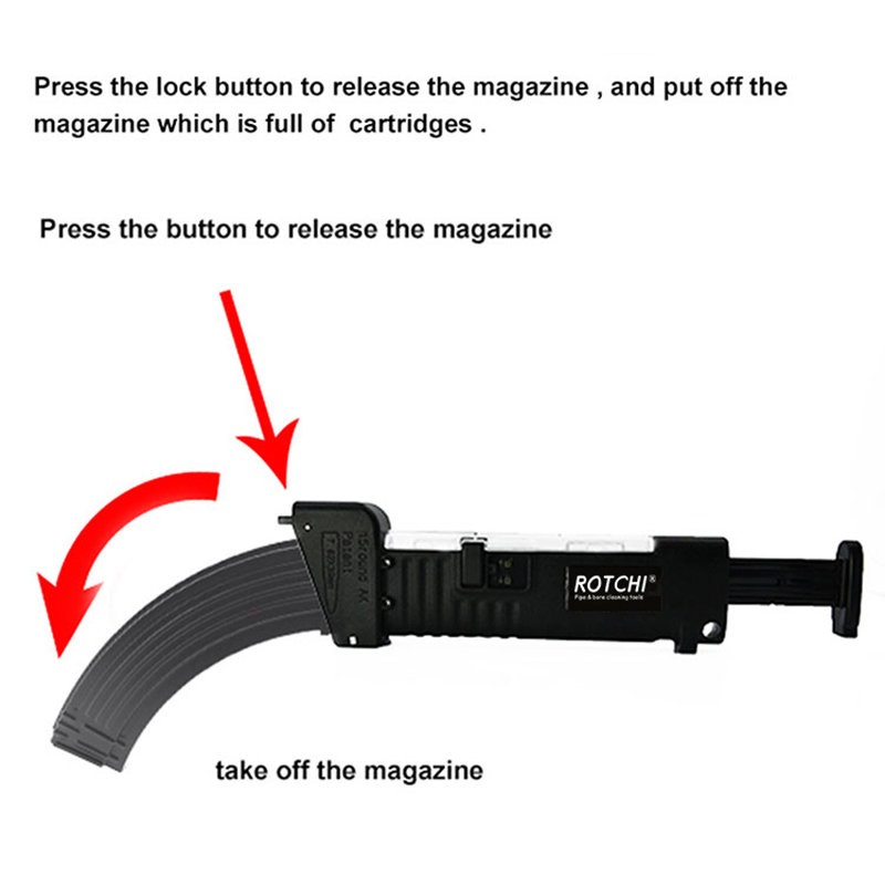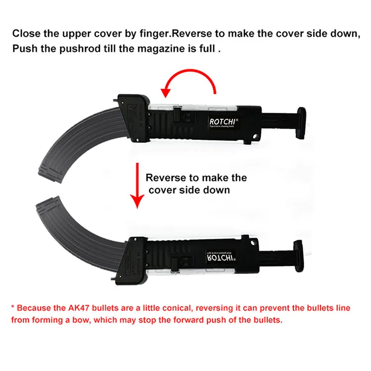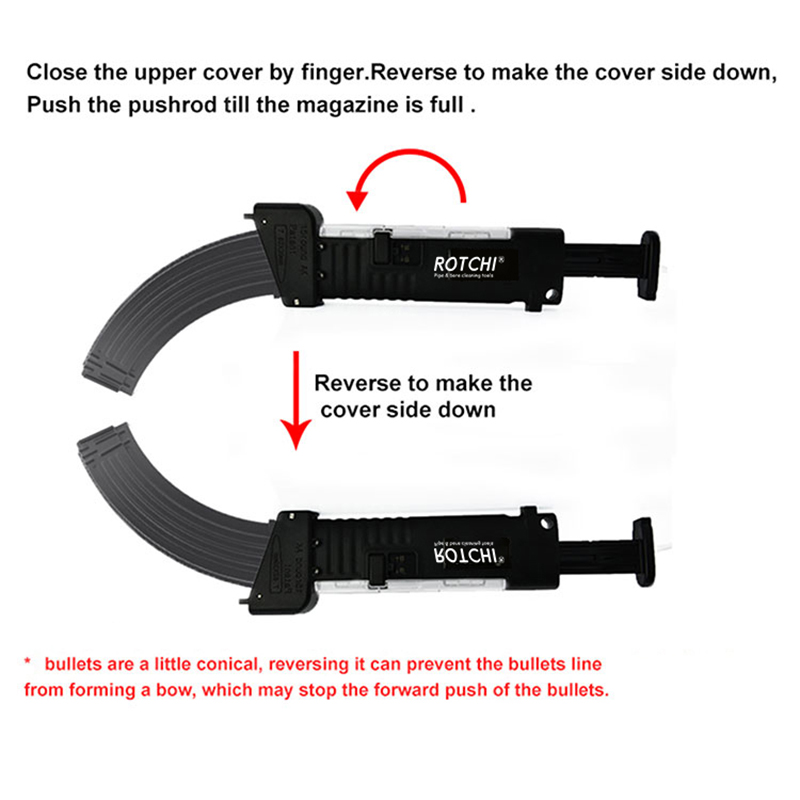 ● ໃຊ້ໃນການໂຫຼດ 7.62x39mm ເຂົ້າໄປໃນວາລະສານ AK ໃນ Magazine ໃນຄວາມຈຸ 30/20/30 ຫຼືຫຼາຍກວ່ານັ້ນ.